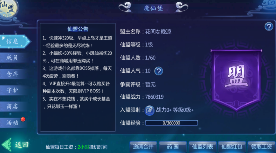 先说一下很多人问的弹劾机制,盟主连续离线超过72的情况下会自动转让,转让规则是这样的,多个副盟主的情况下转让给离线时间最短的副盟主,离线超过3天的副盟主不会转让,会转让给离线3天以内成员中贡献最高的人,如果仙盟内所有的成员离线超过3天,盟主将不会被转让,这里有一个问题,说是72小时,但是有时候会出现72小时还没转让的情况,这种就建议玩家第二天凌晨0点以后看看,会在第二天凌晨0点以后转让出去,是以自然日计算的时间!